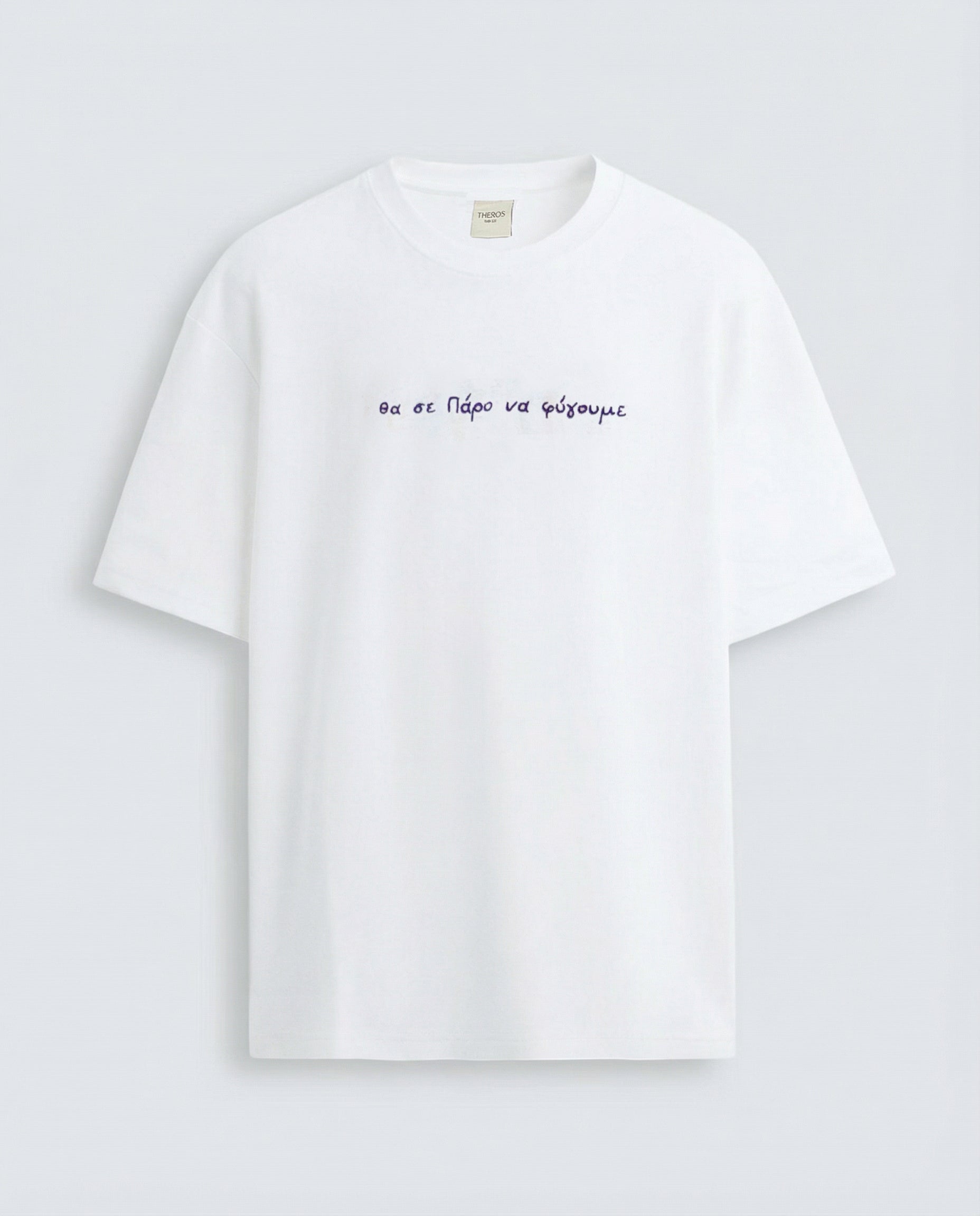 White t-shirt "θα σε Πάρο να φύγουμε"
